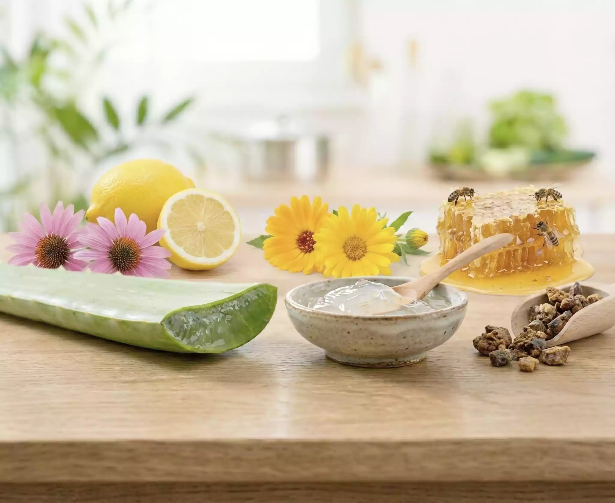 Aquí es donde entra mi ingrediente favorito. El Aloe Vera Barbadensis Miller no es solo para la piel. Estudios sobre el Acemanano (un polisacárido del Aloe) demuestran que estimula los macrófagos (las células que “se comen” a los virus). Pero lo mejor es que el Aloe actúa como un vehículo: ayuda a que los otros ingredientes (equinácea, propóleo, vitamina C) se absorban mejor y lleguen antes a donde hacen falta.
